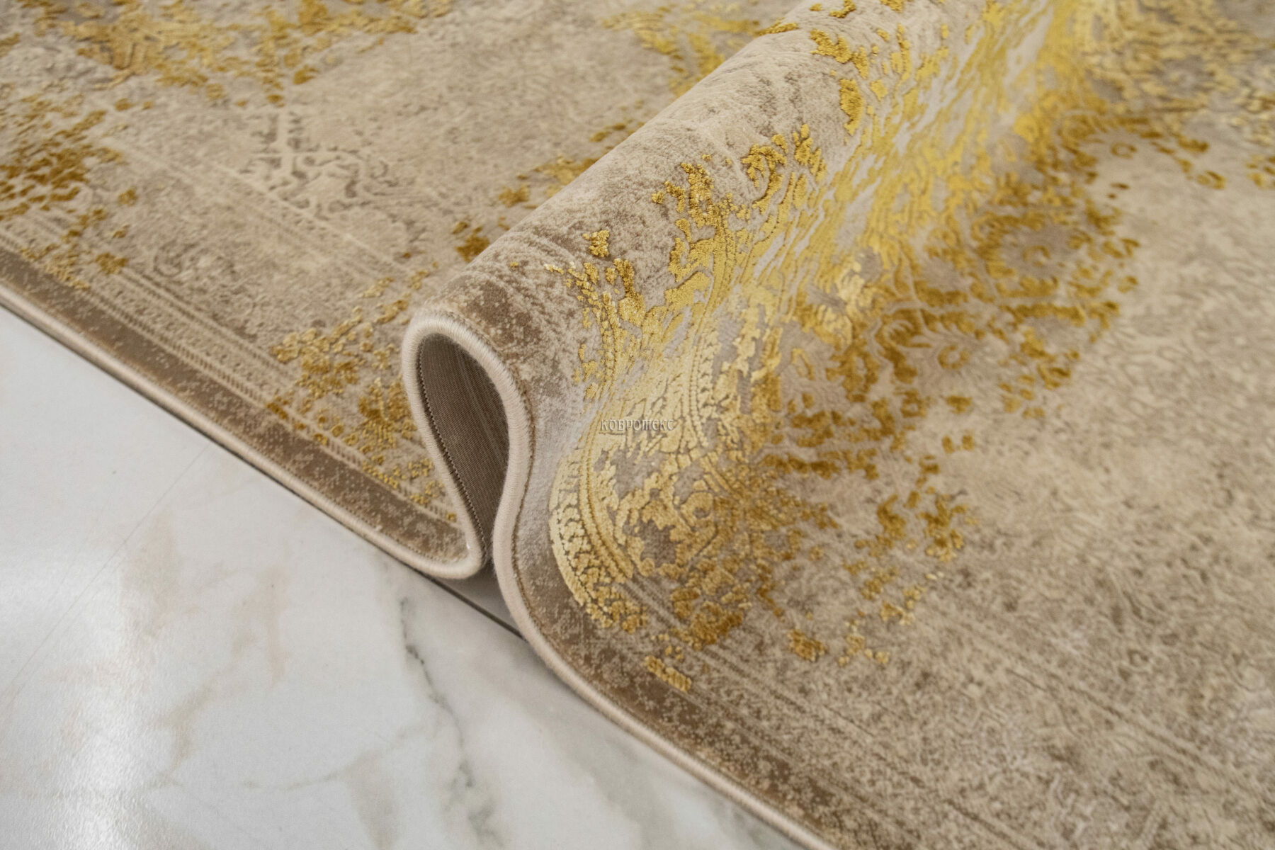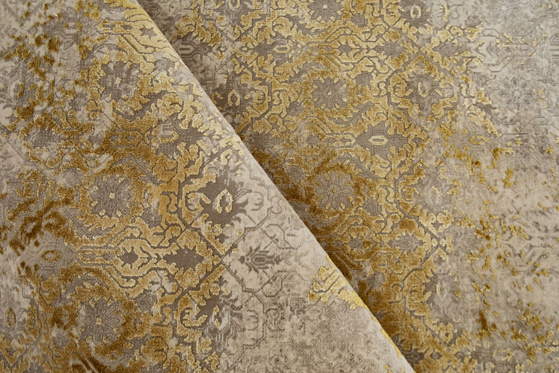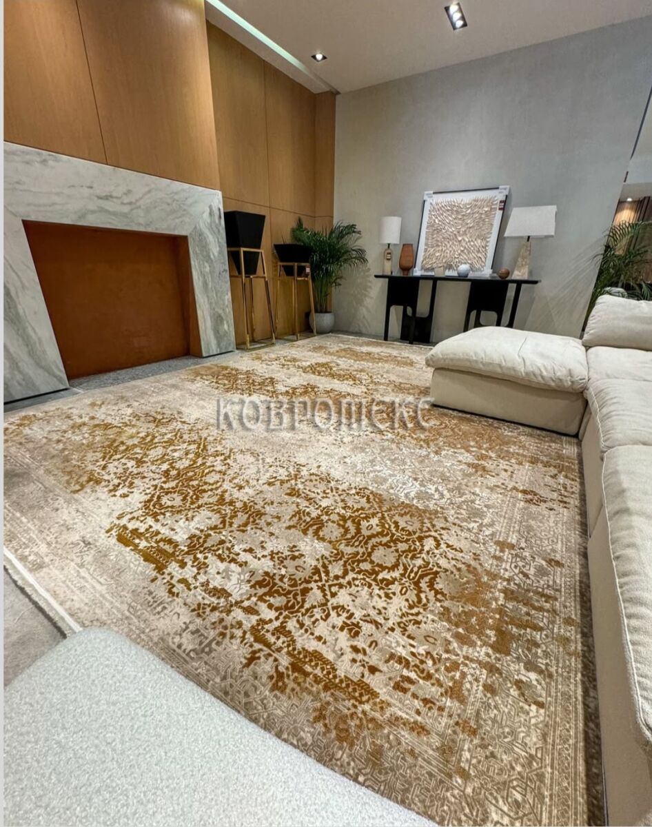 Невероятно плотный ворс 3,6 млн. точек/м2 из смеси эвкалиптового шёлка и акрила привлекает своей мягкостью, удивляя очень высокой детализацией рисунка. Нежные шелковистые нити красиво блестят, переливаясь на свету, а акриловые волокна прекрасно имитируют натуральную шерсть. В зависимости от угла обзора рисунок и оттенок такого ковра воспринимается по-разному: против ворса узор выглядит чётким и насыщенным, по ворсу - более светлым и приглушенным. Короткий ворс 6 мм в совокупности с высокой плотностью обеспечивает хорошую износостойкость и долговечность изделиям.